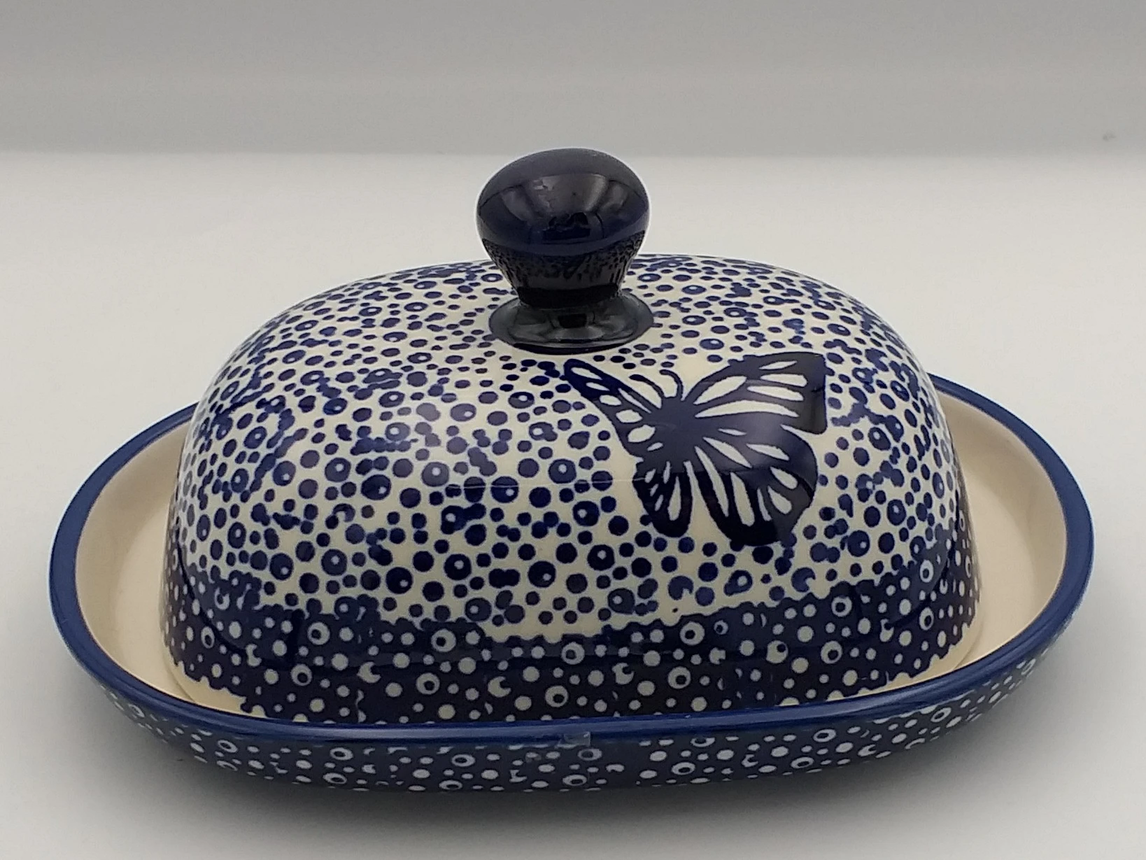 Maselnica mała Bolesławiec z pokrywką to praktyczne naczynie do przechowywania masła i innych produktów spożywczych.