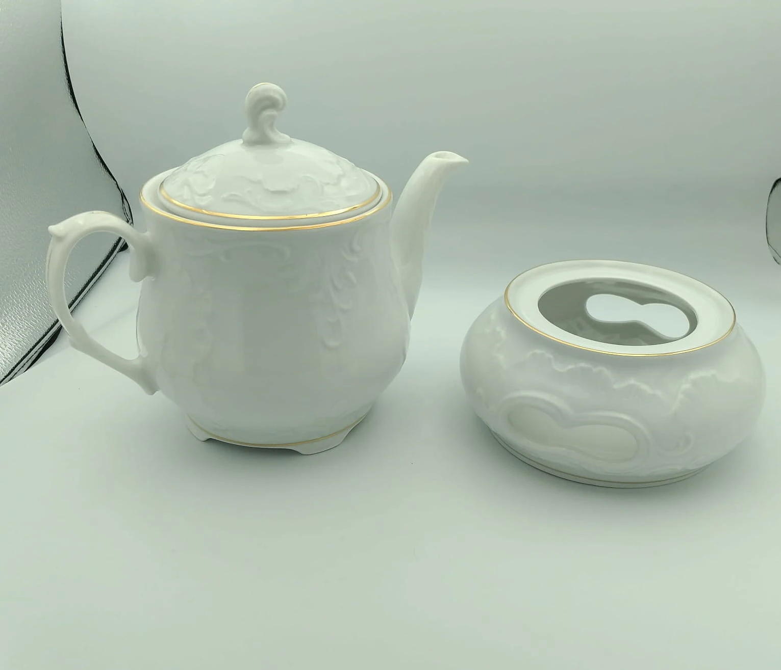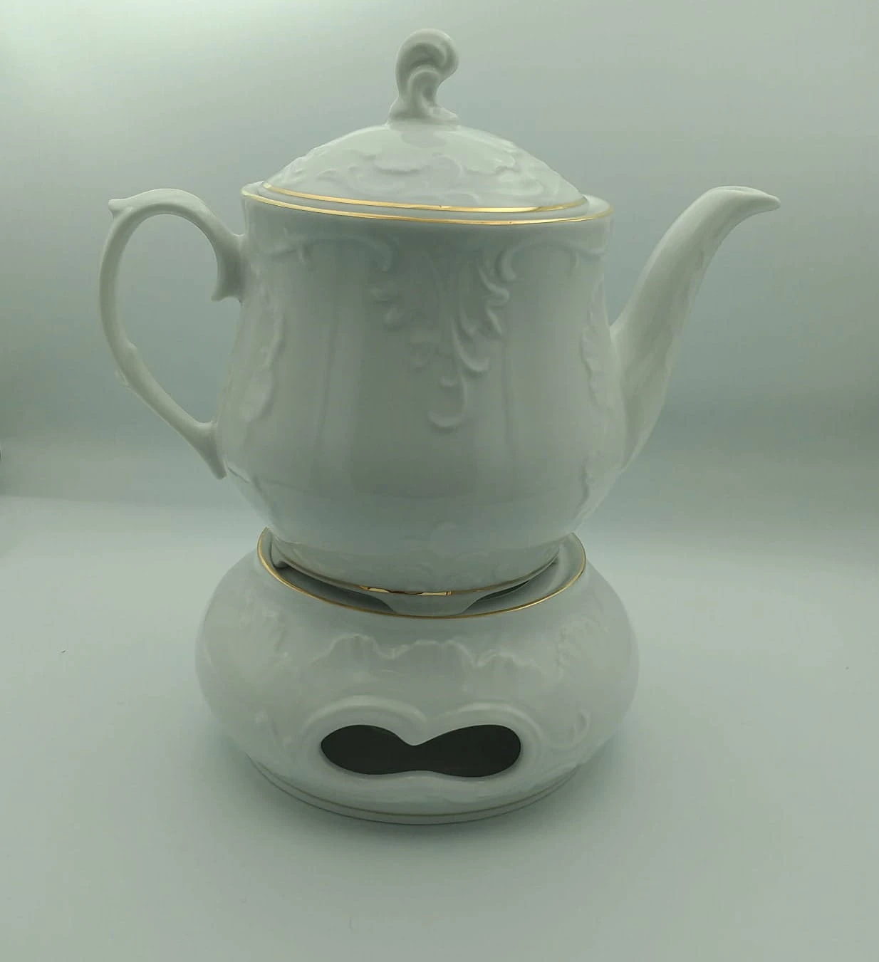 3604 CZAJNIK 1100 ml + PODGRZEWACZ Złota Linia ROCOCO PORCELANA ĆMIELÓW