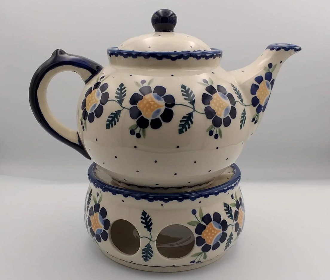 Czajnik 1,5 l w całości wykonany ręcznie zdobiony w drobne kropeczki. Idealnie przystosowany do użytku codziennego, będzie ozdobą każdej kuchni czy jadalni a dzięki dużej pojemności spełni wymagania każdej osoby. Nadaje się do kawy jak i herbaty, stanowi komplet z podgrzewaczem dużym. Przystosowany do kontaktu z żywnością, możliwość mycia w zmywarce.