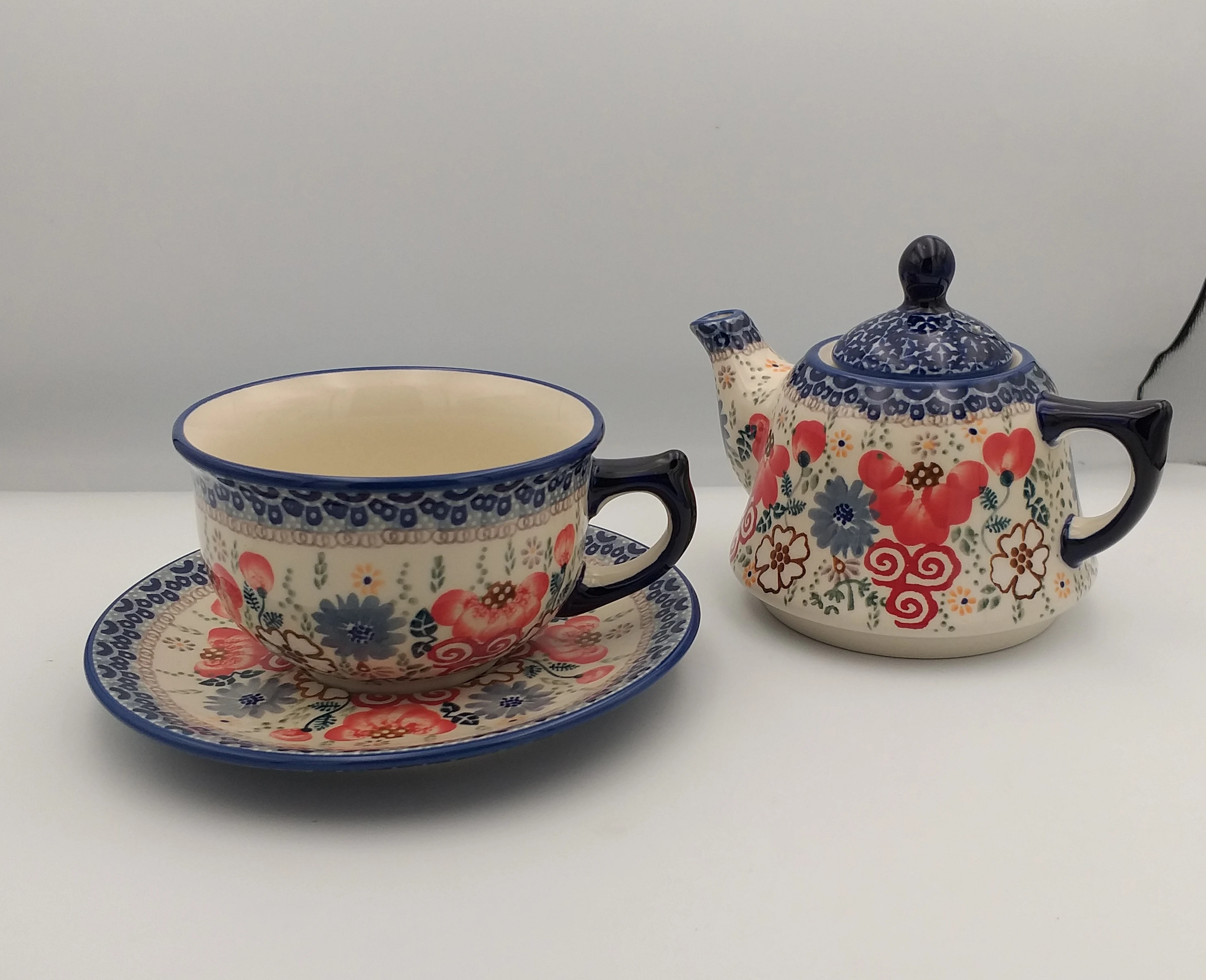 Zestaw czajniczek z filiżanką i spodkiem Bolesławiec
