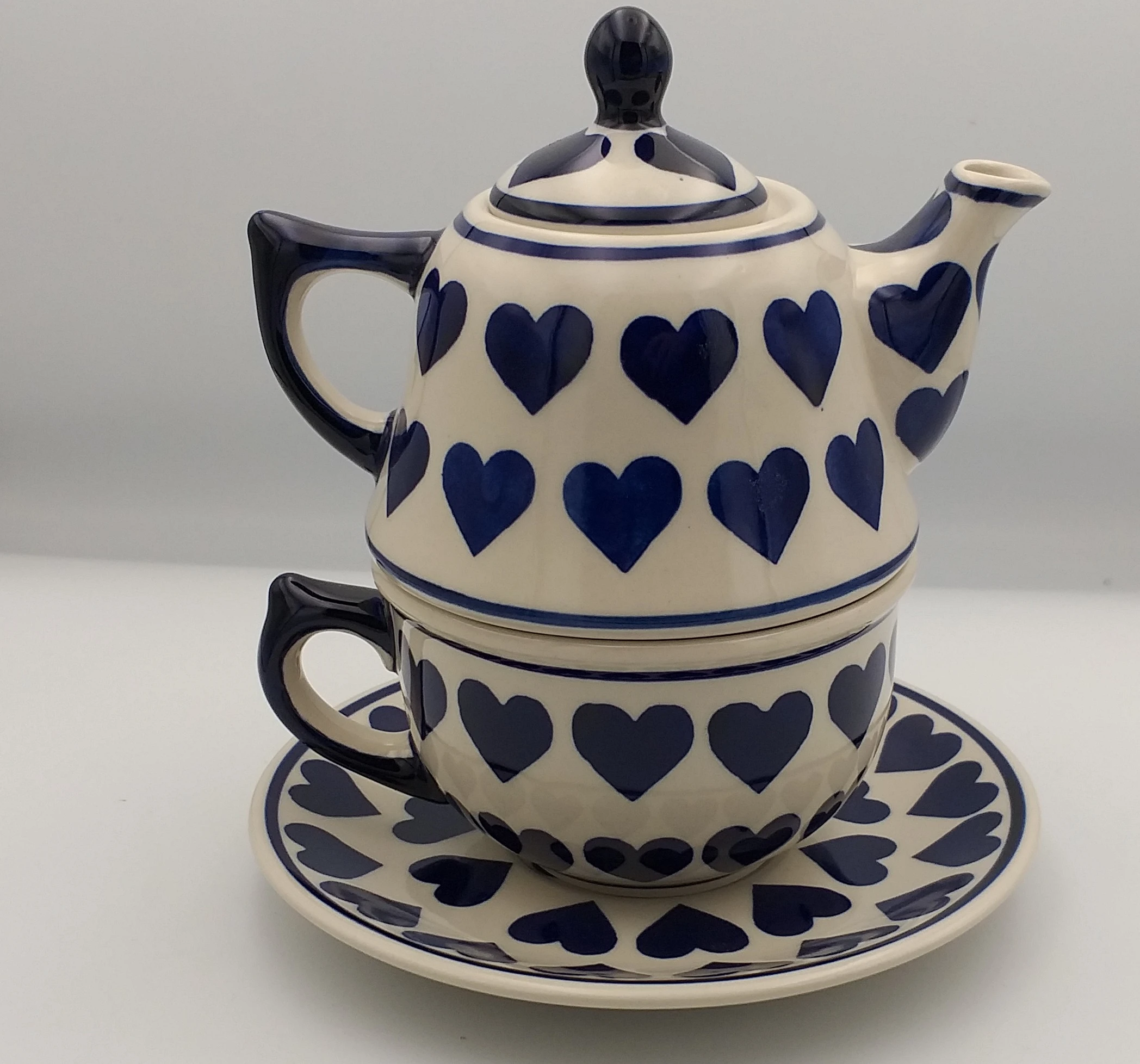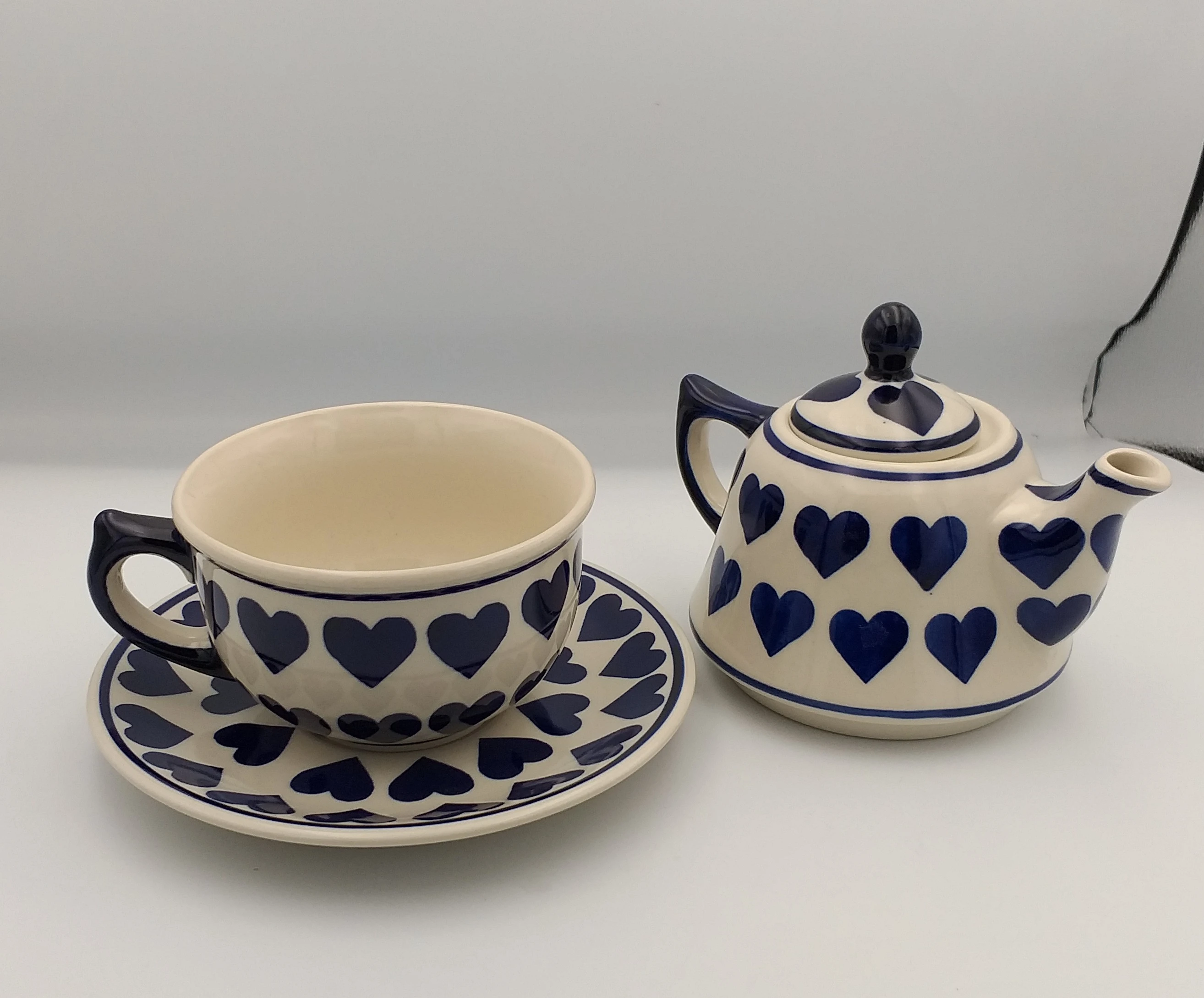 Zestaw czajniczek z filiżanką i spodkiem Bolesławiec