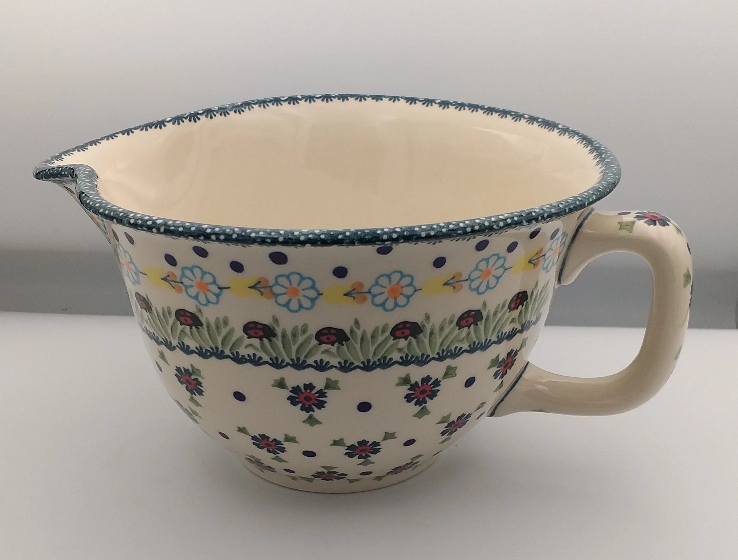 Dzbanek do ciasta naleśnikowego 2,47 l Bolesławiec to praktyczne naczynie do przygotowywania i wylewania ciasta.