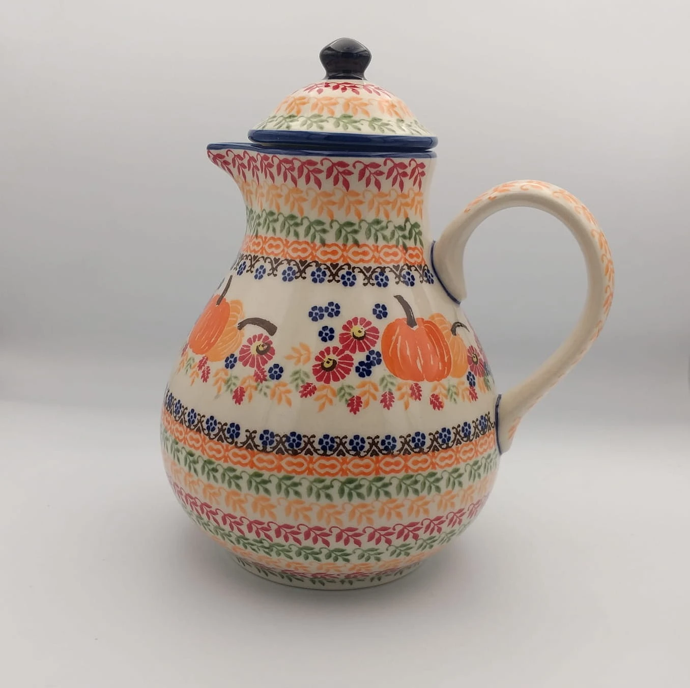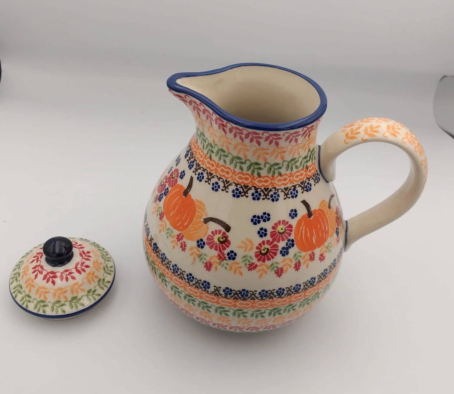 Uwaga: Ze względu na ręczne wykonanie, każdy dzbanek może nieco różnić się od prezentowanych na zdjęciach. Mogą wystąpić minimalne różnice w zdobieniu w ramach jednej dekoracji, co sprawia, że każdy dzbanek jest wyjątkowy. Podane wymiary są orientacyjne i mogą nieznacznie różnić się od rzeczywistych.