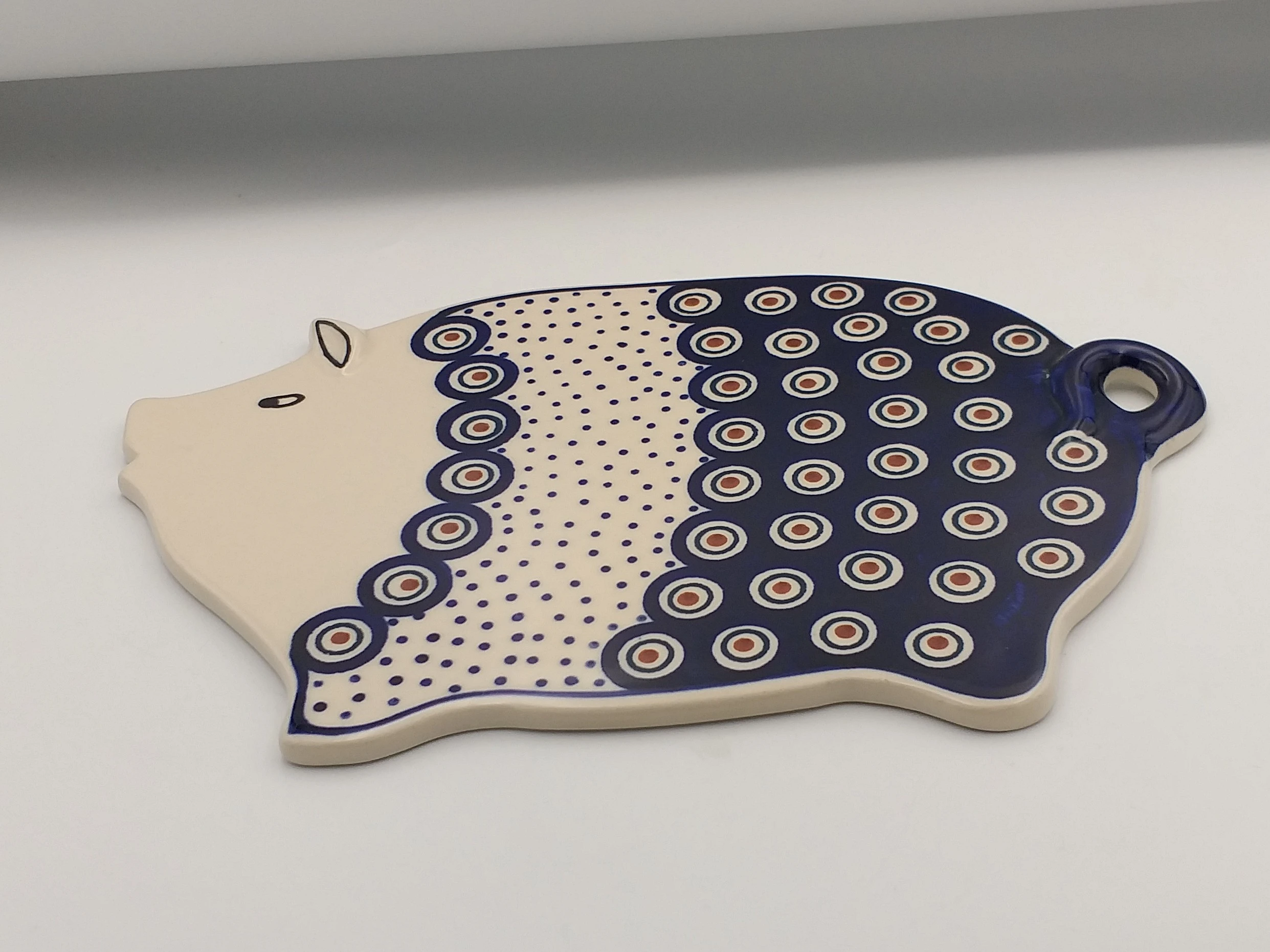 Deska do krojenia w kształcie świnki z ceramiki Bolesławiec to praktyczny i jednocześnie dekoracyjny element kuchni. Sprawdzi się do krojenia, serwowania przekąsek lub jako oryginalna podstawka.