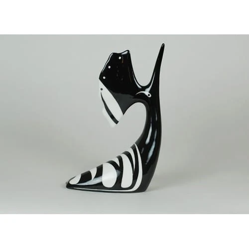 Projektant Mieczysław Naruszewicz Wzór z roku 1958 Numer katalogowy 349 Szerokość (mm) 60 Wysokość (mm) 200 Długość (mm) 120 Mieczysław Naruszewicz Ur. 1923 w Warszawie, zm. w 2006 roku w Warszawie. W latach 1947- 1949 studiował na Wydziale Rzeźby ASP w Krakowie (pracownia X. Dunikowskiego), następnie w latach 1949-1951 na ASP w Warszawie (dyplom 1953 roku). W latach 1956-61 projektant w Zakładzie Ceramiki i Szkła w Warszawie. Wspólnie z H. Jędrasiakiem, H. Orthwein i L. Tomaszewskim przygotowywał dla polskich fabryk porcelany modele rzeźby kameralnej. Zaprojektował około 44 wzorów, m.in.: Leżąca kotka, Sroka, Byczek Corrida, Dzik.