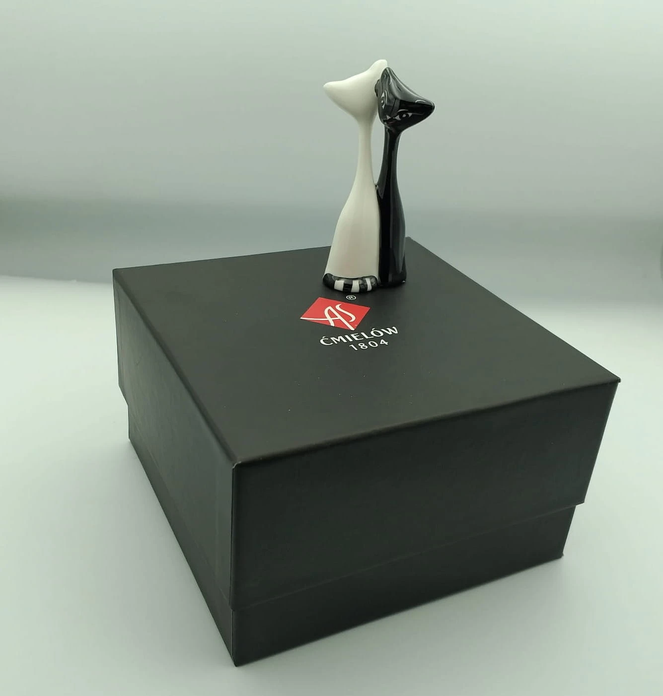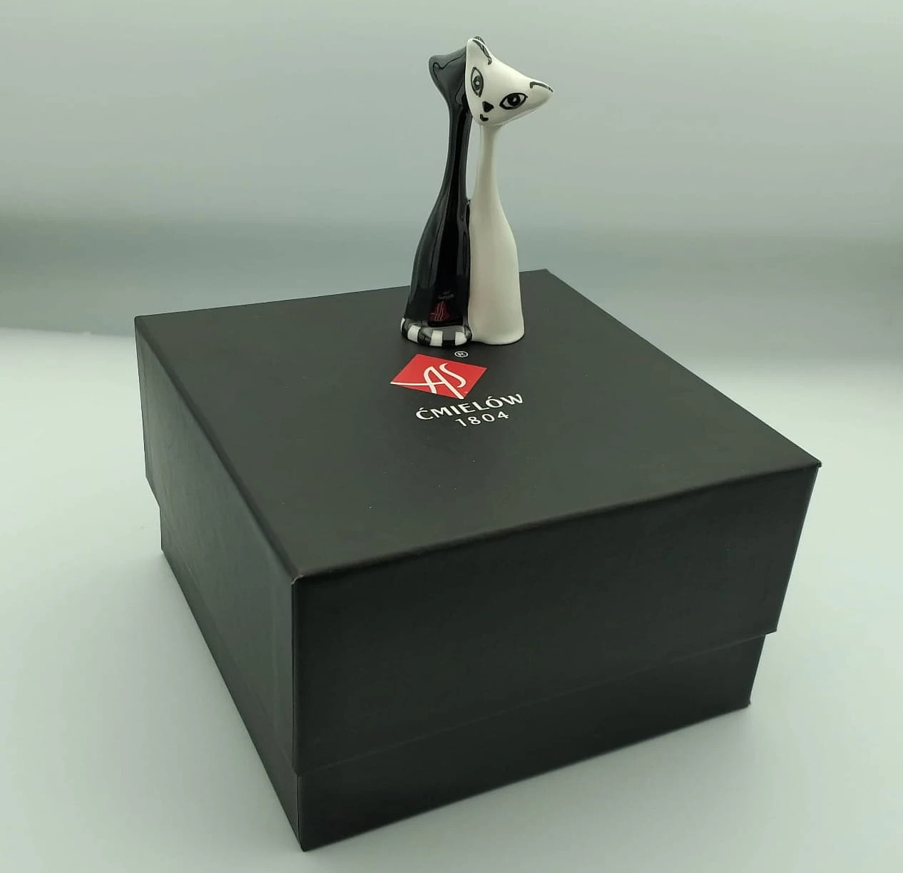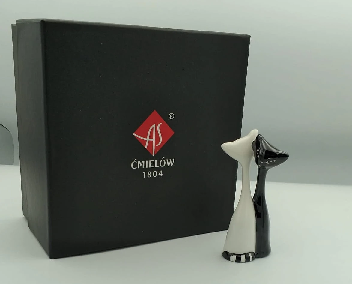 FIGURKA PORCELANOWA AS ĆMIELÓW KOTEK BIAŁY I CZARNY