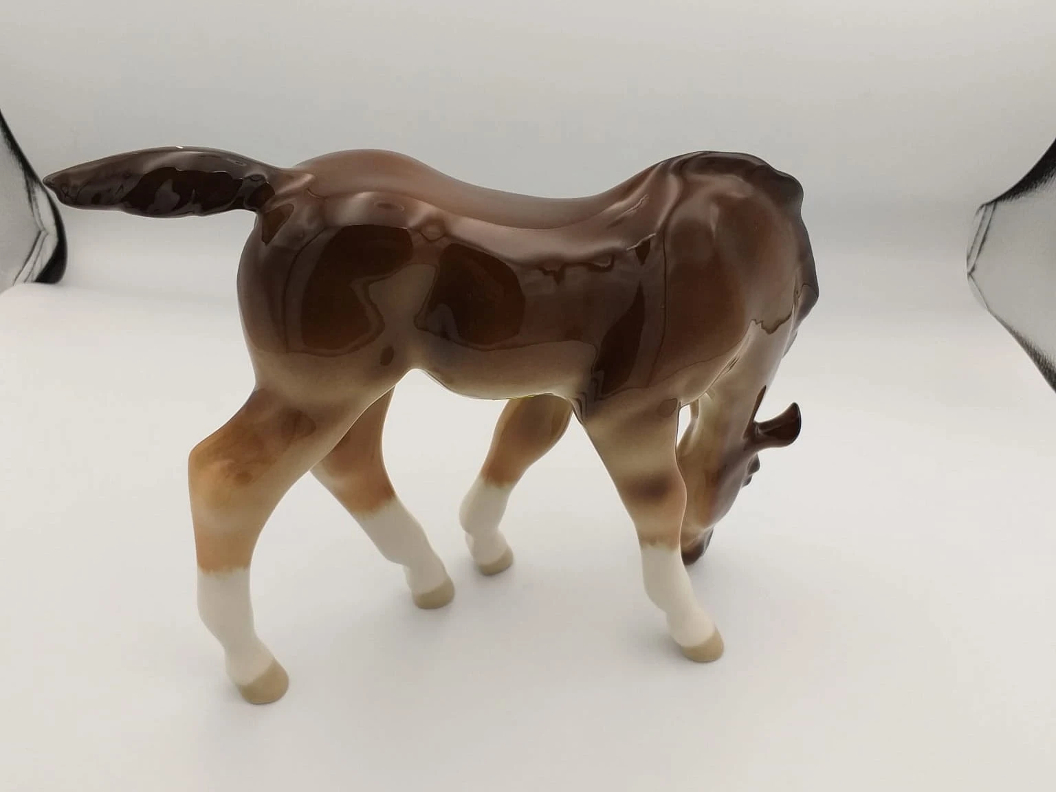 FIGURKA PORCELANOWA Źrebak pasący się gniady