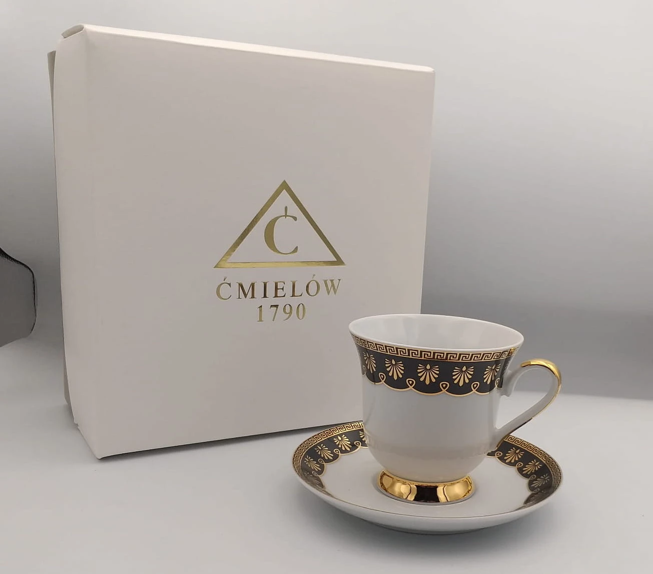 Filiżanka 250 ml ze spodkiem 14 cm Astra Ellada G339. Filiżanka Astra Ellada to porcelana w iście imperialnym stylu! Ekskluzywnego czarno-złotego zdobienia nie powstydziłby się żaden władca czy arystokrata. Antyczne proporcje czynią filiżankę przedmiotem zarówno klasycznym, jak i efektownym. Słowem - idealnym na najważniejsze okazje w życiu. Astra - wysublimowane kształty naczyń zwracają uwagę łagodnie zarysowanymi liniami i idealnie wyważonymi proporcjami. Kolekcja urzeka klasyczną elegancją zarówno w wersji bez zdobień, dekorowana klasyczną złotą kreską czy ornamentowym wzorem. Sprawdzi się podczas uroczystych, rodzinnych spotkań, a także doda przyjemności codziennym posiłkom.