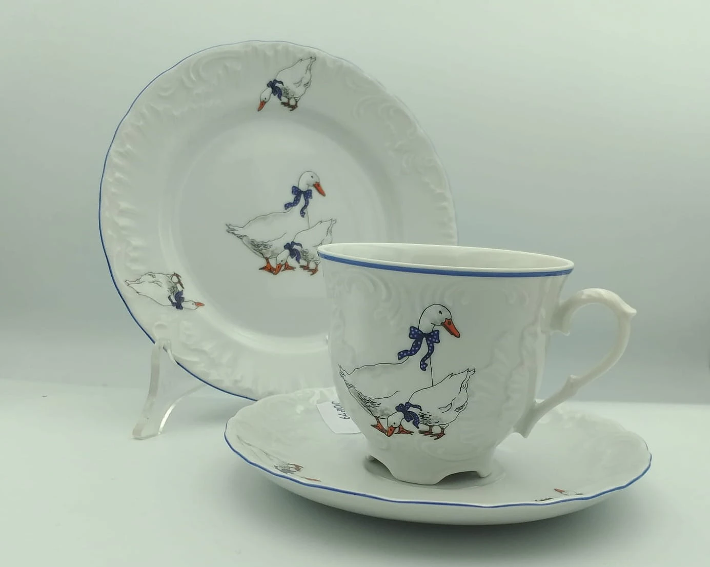 Filiżanka 250 ml ze spodkiem i talerzykiem deserowym Rococo E280 GĘSI