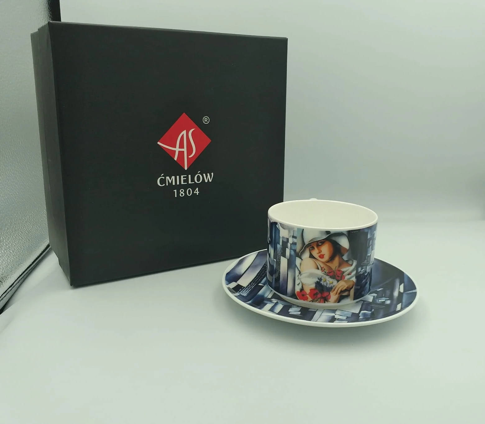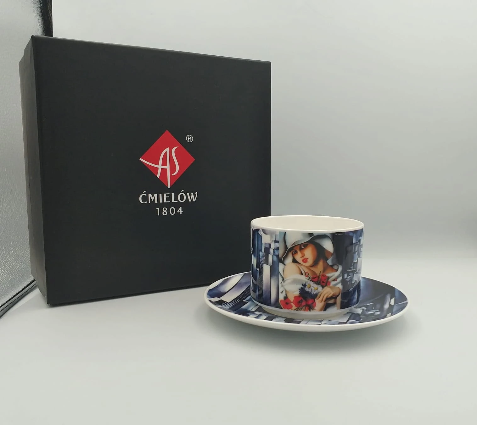 Filiżanka Amelia "Pełnia lata" - Tamara de Lempicka Na porcelanowej filiżance Amelia został zamieszczony obraz specjalnie opracowane tło. Grafika z tłem znalazła się także na porcelanowym spodku. Pod spodem filiżanki oraz spodka znajduje się opis z tytułem pracy oraz logo fundacji Tamara de Lempicka. Na środku spodka znajduje się powierzchnia na której może zostać wykonana dedykacja (opcja wykonania napisu jest dodatkowo płatna). Każdy produkt otrzymuje dedykowany certyfikat autentyczności.. Pojemność filiżanki Amelia to: 180 ml