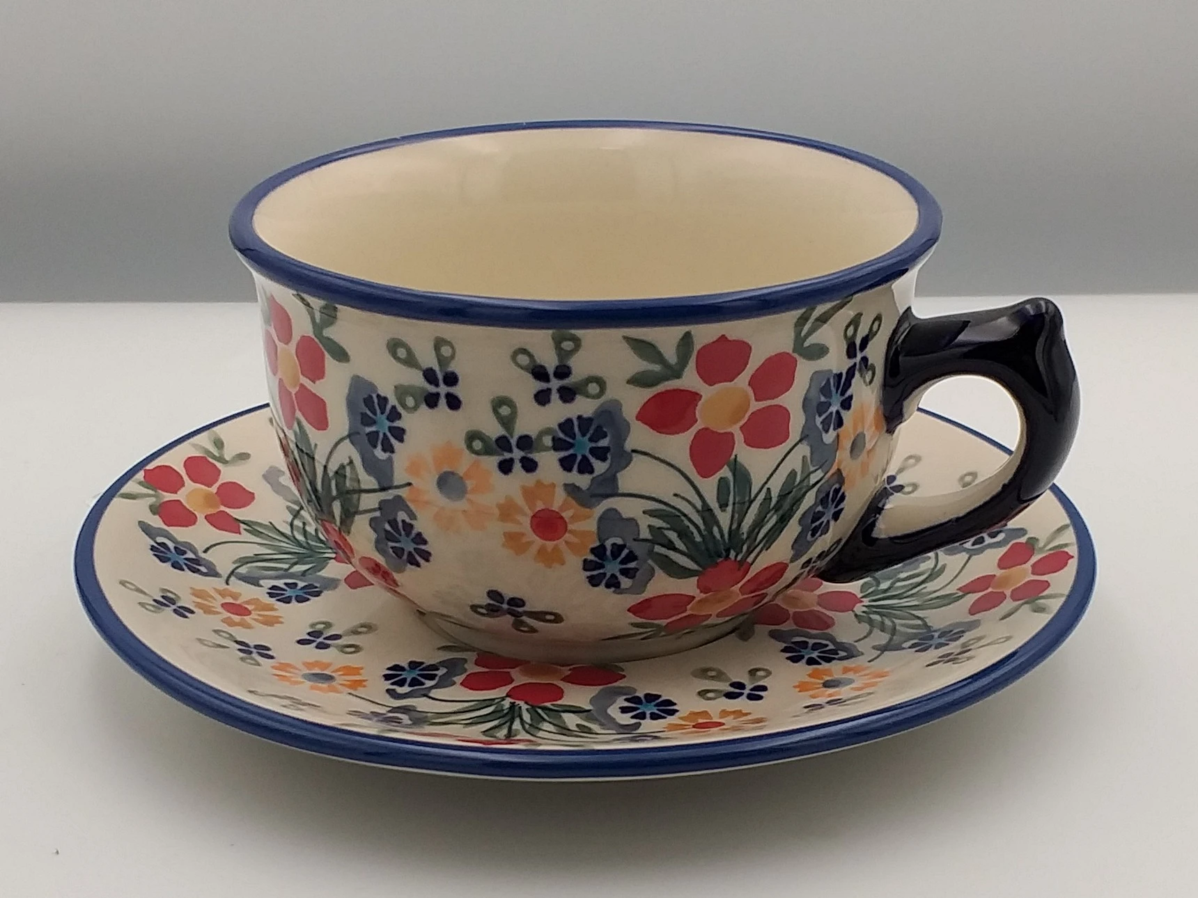 Filiżanka duża 0,33 l Bolesławiec to pojemna filiżanka do serwowania kawy i herbaty.