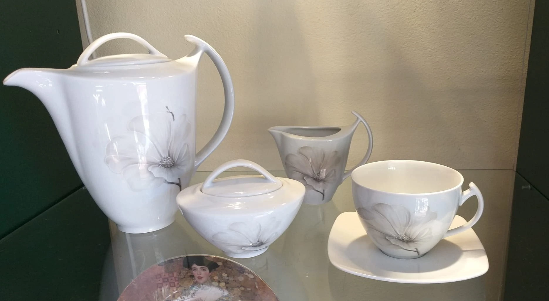 Serwis kawowy na 12 osób Akcent Magnolia G463 to porcelanowy zestaw o nowoczesnej formie i subtelnej dekoracji. Fason Akcent wyróżnia się prostymi liniami, a dekoracja Magnolia wprowadza delikatny, roślinny akcent.