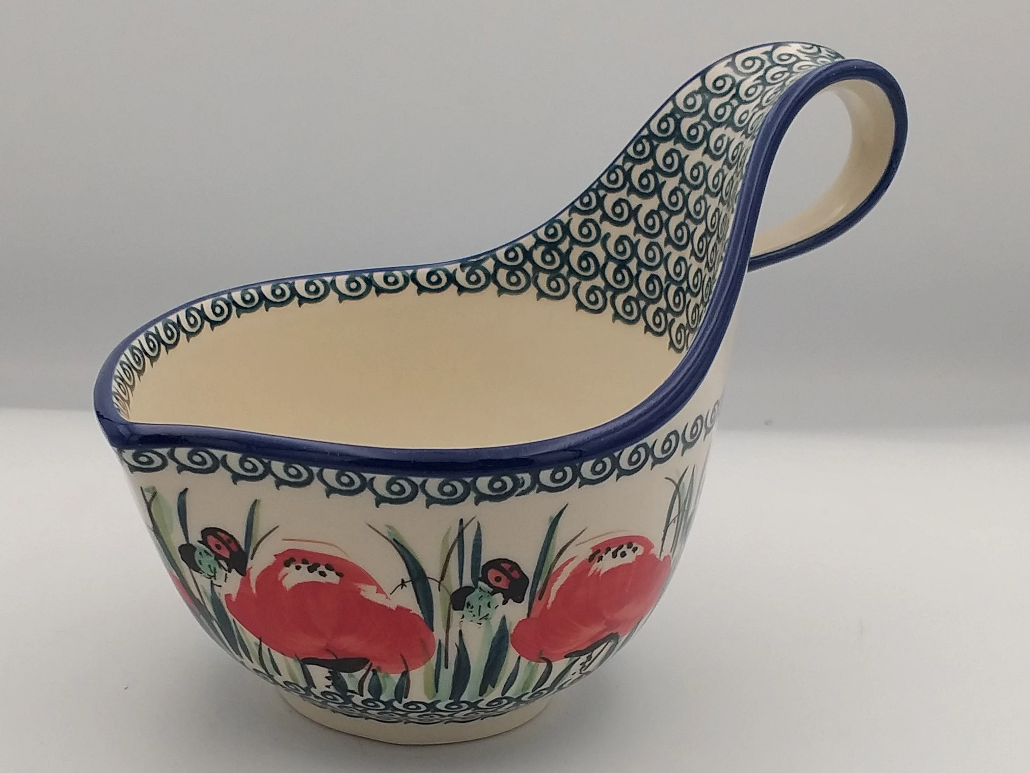 To element, który dobrze sprawdza się podczas rodzinnych obiadów i przyjęć – sos można podać osobno, a każdy nakłada go według własnych preferencji. Ceramika bolesławiecka sprawia, że sosjerka prezentuje się elegancko na stole.