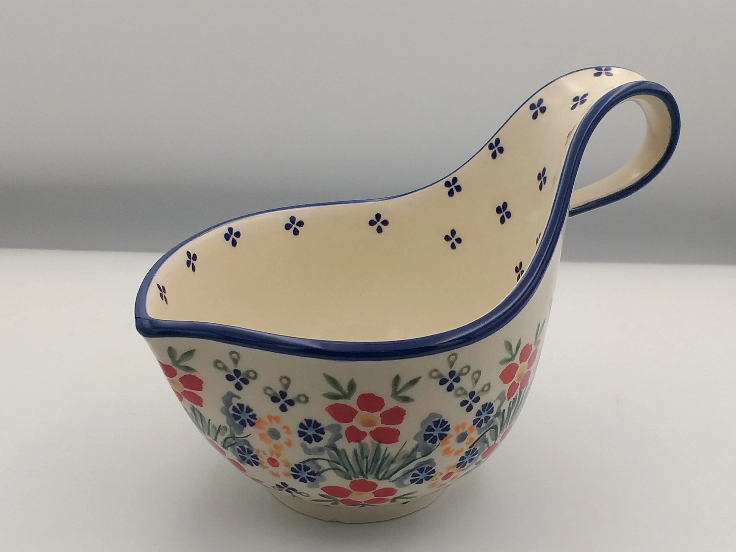 To element, który dobrze sprawdza się podczas rodzinnych obiadów i przyjęć – sos można podać osobno, a każdy nakłada go według własnych preferencji. Ceramika bolesławiecka sprawia, że sosjerka prezentuje się elegancko na stole.
