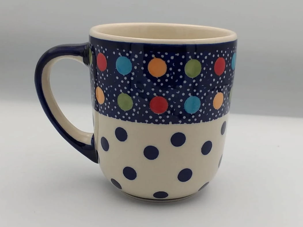 Kubek Nowy o pojemności 0.48l to coś dla tych którzy szukają nowych i niepowtarzalnych kształtów. Duża pojemność kubka z pewnością pozwoli dłużej cieszyć się ulubionym napojem, a piękny kształt dopasuje się do każdego stołu. Produkt w całości wykonany ręcznie nadaje się do użytku w zmywarce, przystosowany do kontaktu z żywością.