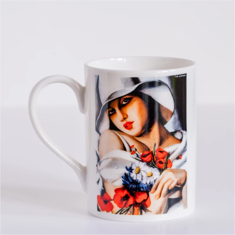 Na jednej ściance kubka znajduje się kalkomania z obrazem, na odwrocie logo Tamara de Lempicka, a pod spodem opis z informacjami o obrazie. Kalkomania wypalana jest w wysokich temperaturach. Pojemność każdego kubka to około 250 ml. Każdy kubek wykonany jest ręcznie z najwyższej jakości porcelany, a następnie na produkcie umieszczana jest ręcznie kalkomania wypalana w wysokich temperaturach. Wyrób posiada specjalne zabezpieczenie w postaci znaków podszkliwnych oraz naszkliwnych. Wytwarzane w naszej fabryce wyroby posiadają m.in. zamieszczone pod spodem logo fabryczne. Do kubka dołączany jest CERTYFIKAT AUTENTYCZNOŚCI, który zawiera informacje o ręcznej produkcji i zdobieniu, a także informacje o wyrobie (nazwa, nazwisko projektanta, rok zaprojektowania, tytuł obrazu). Obraz "Pełnia Lata" pojawił się na okładce niemieckiego magazynu mody „Die Dame” w sierpniu 1928 roku. W biografii, którą poświęciła swojej matce, Lizette de Lempicka-Foxhall znalazła się informacja że „la belle” Rafaela zbliżyła się do Łempickiej podczas jednego z jej codziennych porannych spacerów po Lasku Bulońskim. Łempicka zachwyciła się jej urodą. Artystka zaprosiła ją do zapozowania, na co młoda kobieta przystała. Współpraca była dość owocna, ponieważ pozowała ona jeszcze Tamarze Łempickiej przez ponad rok.