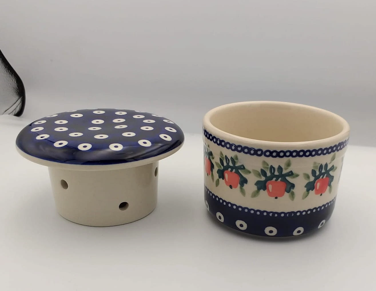 Maselnica hermetyczna, to produkt unikatowy wykonany ręcznie. Rewelacyjnie sprawdzi się do użytku codziennego lub jako niebanalny prezent dla każdego miłośnika ceramiki. Maselnica będzie ciekawym uzupełnieniem każdej kolekcji, nadaje się do mycia w zmywarce i jest przystosowana do kontaktu z żywnością. Wymiary: Długość 11 cm Szerokość 11 cm Wysokość 7,8 cm Średnica: 11,5 cm