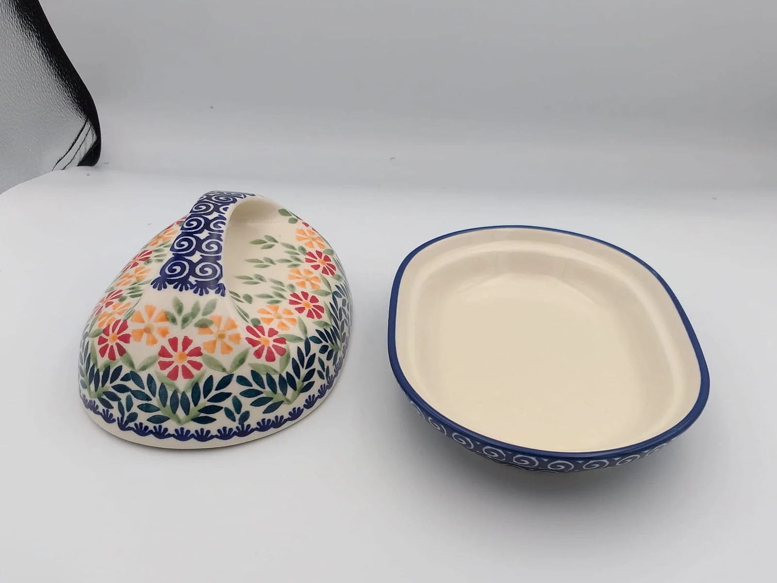 Uwaga: Ceramika Bolesławiecka jest wyrobem rzemieślniczym, dlatego każda maselnica może nieznacznie różnić się od prezentowanych na zdjęciach. Możliwe są minimalne różnice w zdobieniu w ramach jednej dekoracji, co dodaje im niepowtarzalnego charakteru. Podane wymiary są orientacyjne i mogą nieznacznie różnić się od rzeczywistych.