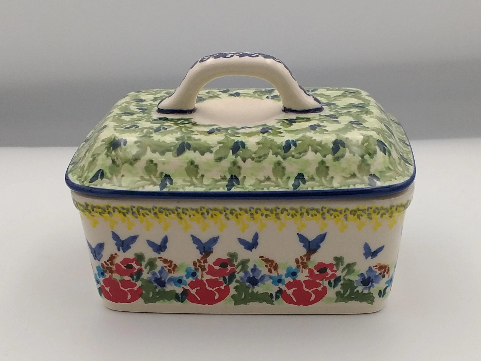 Maselnica Stara Bolesławiec to klasyczne naczynie do przechowywania i podawania masła.