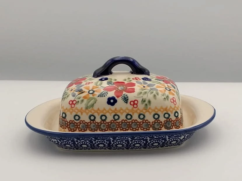 Mała maselnica z pewnością doda uroku Twojemu stołowi. Wykonana z wysokiej jakości ceramiki Bolesławieckiej, ta maselnica jest nie tylko praktyczna, ale także pięknie zdobiona w charakterystycznym stylu JS14. Jej kompaktowy rozmiar sprawia, że idealnie nadaje się do przechowywania masła na codzień, dodając przy tym elegancji Twojej kuchni.