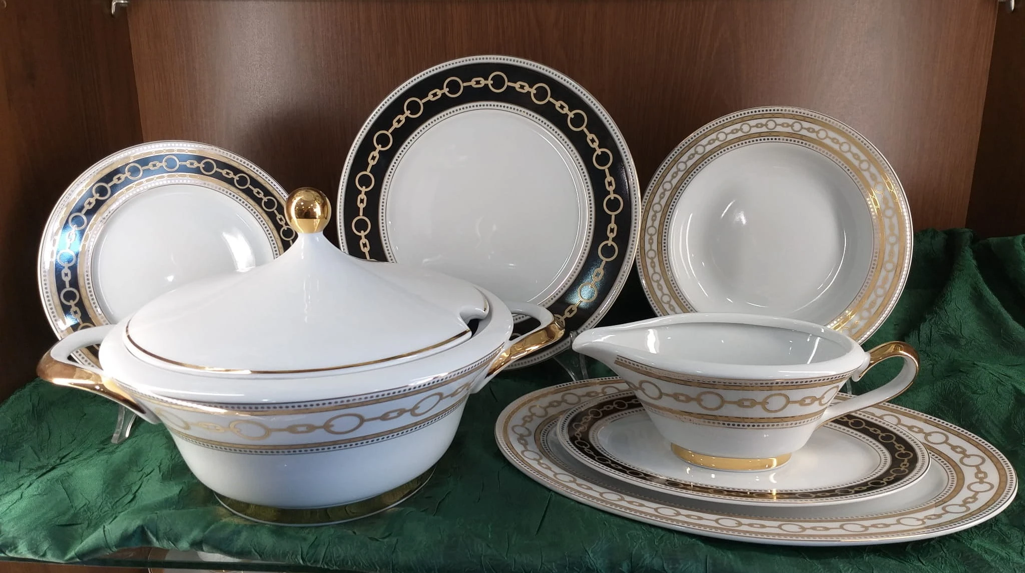 Kolekcja Margaret Mediolan inspirowana jest włoską sztuką i tradycją regionu Lombardii. Charakterystyczne zdobienia w formie złotych łańcuchów nadają porcelanie wyrazisty i elegancki wygląd, podkreślając jej dekoracyjny charakter.
