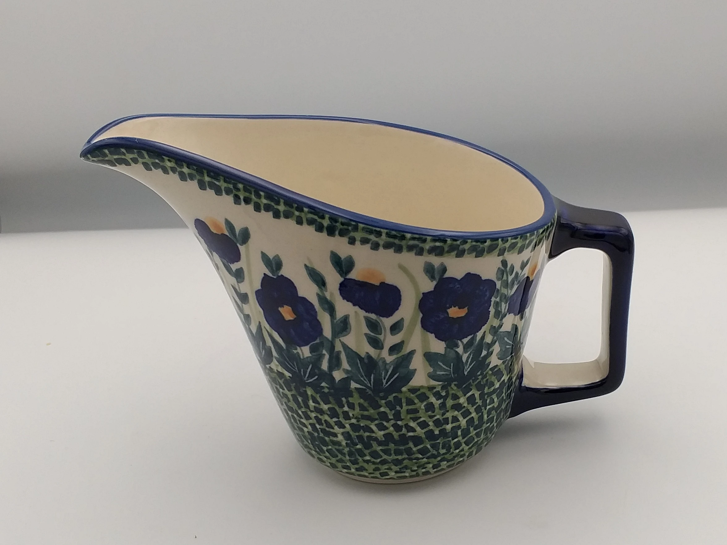 Sosjerka M z ceramiki Bolesławiec to praktyczne naczynie do serwowania sosów, dressingów i dodatków do potraw. Dzięki wygodnej formie ułatwia nalewanie i estetyczne podanie dań na stole.