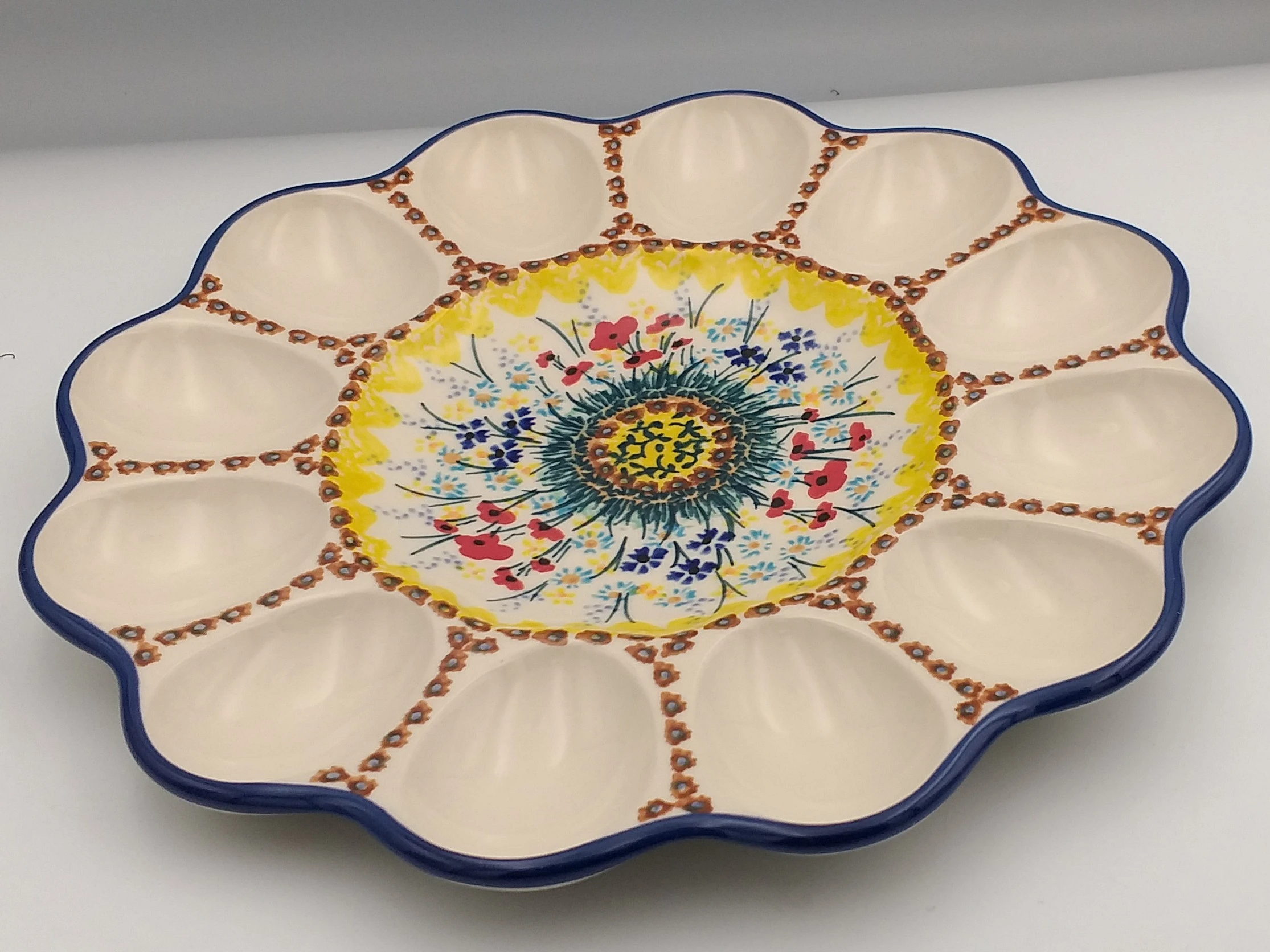 Talerz na jajka Bolesławiec to praktyczne naczynie do serwowania jajek i przystawek.