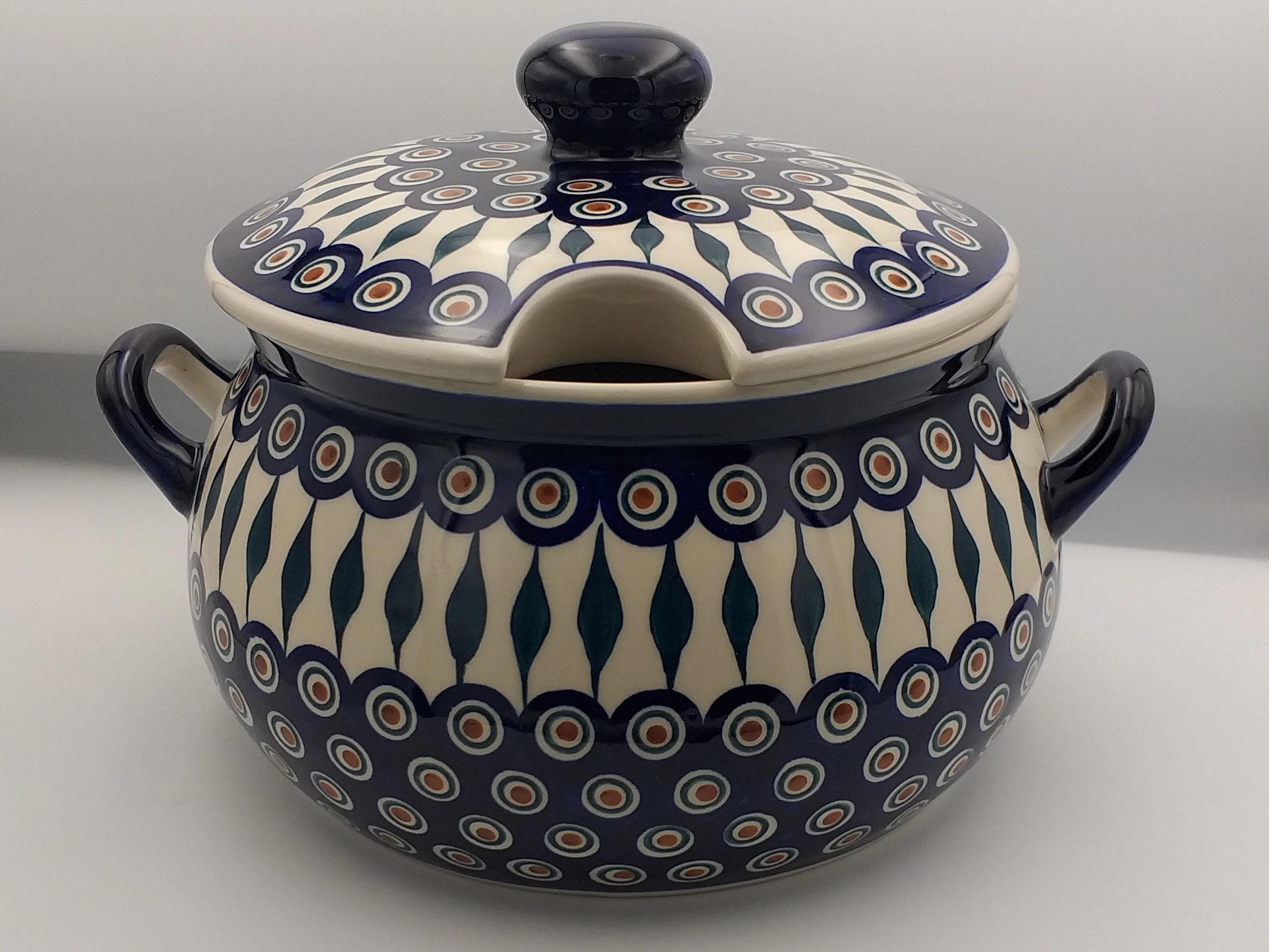 Waza duża 3,8 l Bolesławiec to pojemne naczynie do serwowania zup i dań jednogarnkowych.