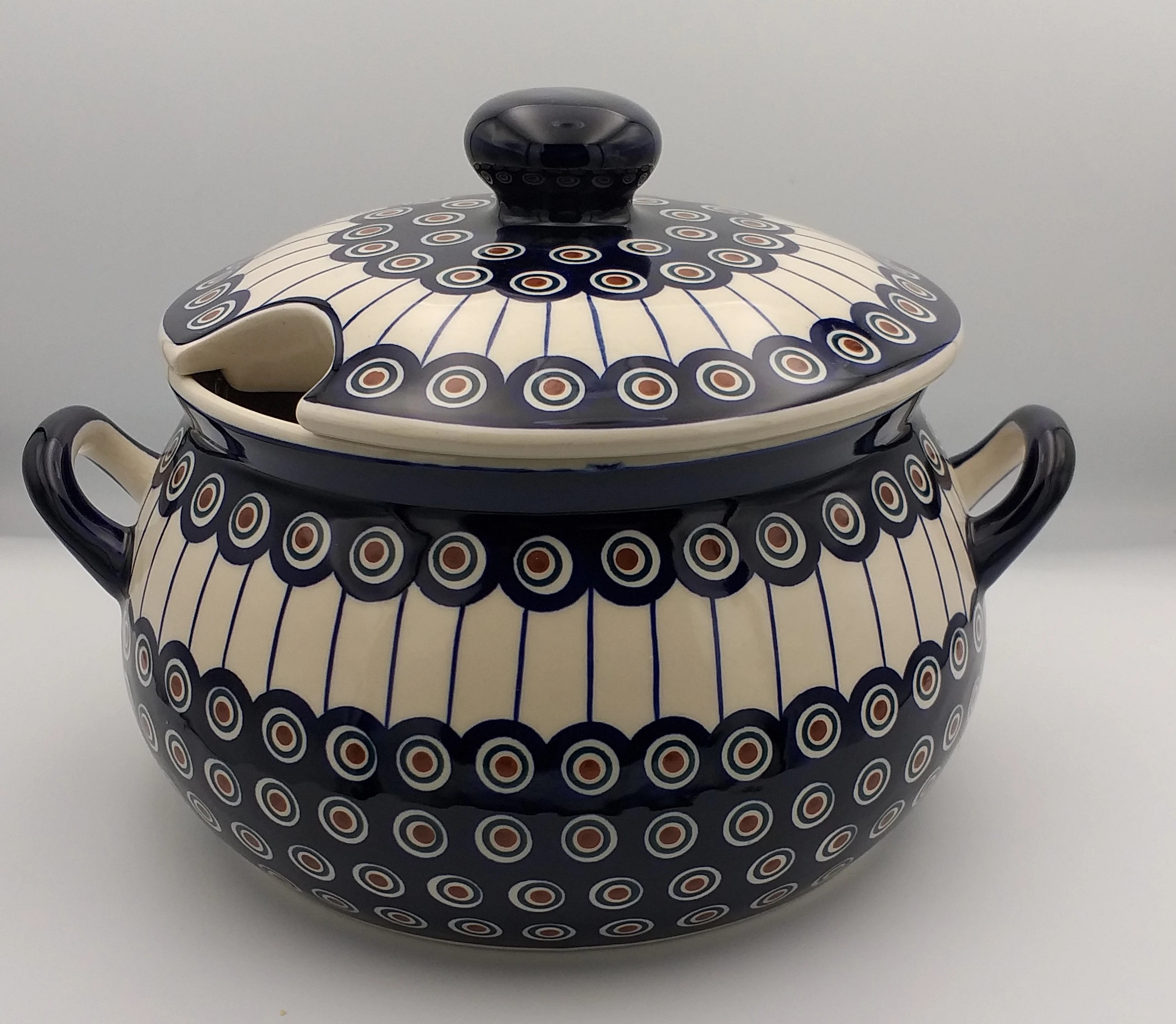 Waza duża 3,8 l Bolesławiec to pojemne naczynie do serwowania zup i dań jednogarnkowych.