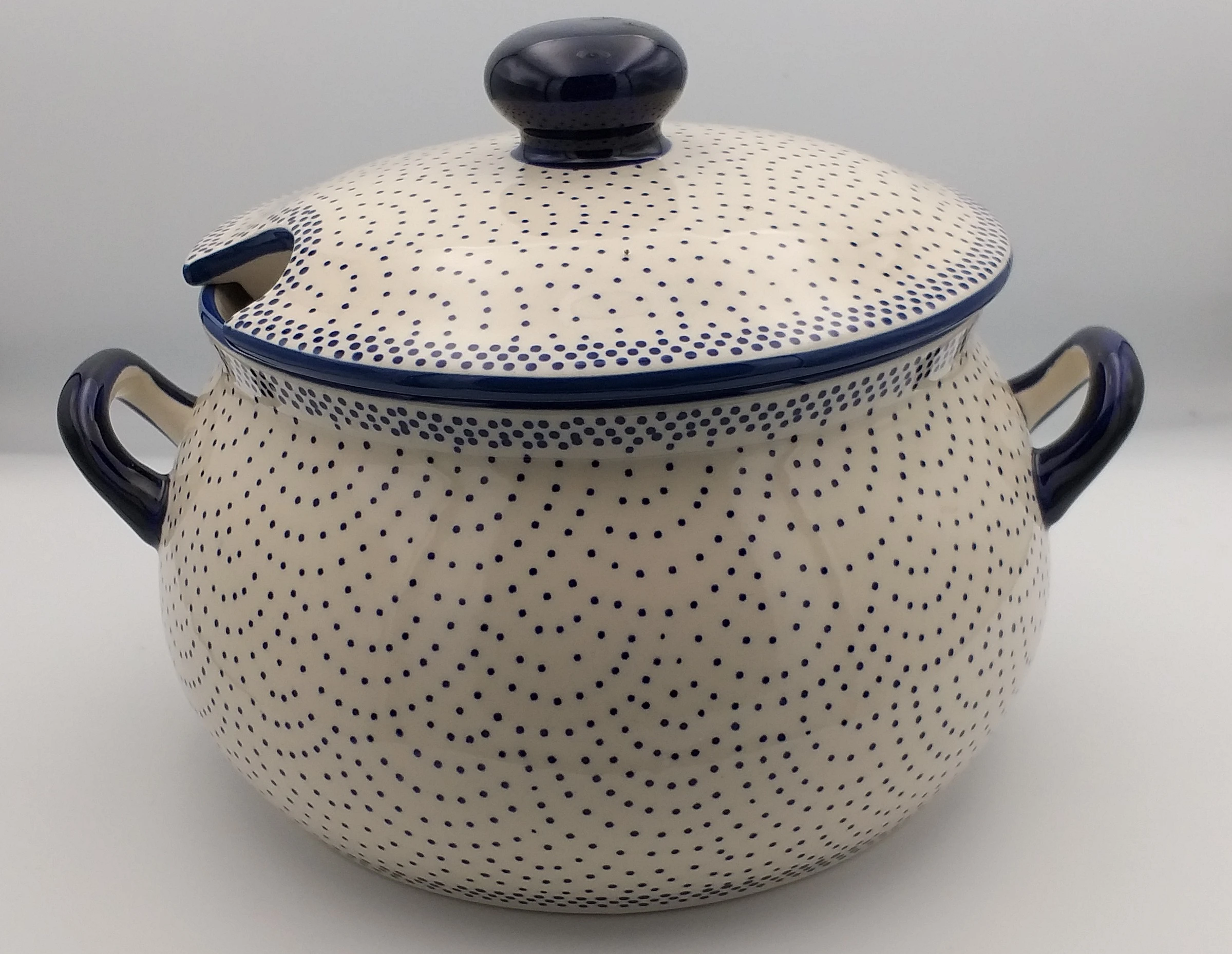Waza duża 3,8 l Bolesławiec to pojemne naczynie do serwowania zup i dań jednogarnkowych.