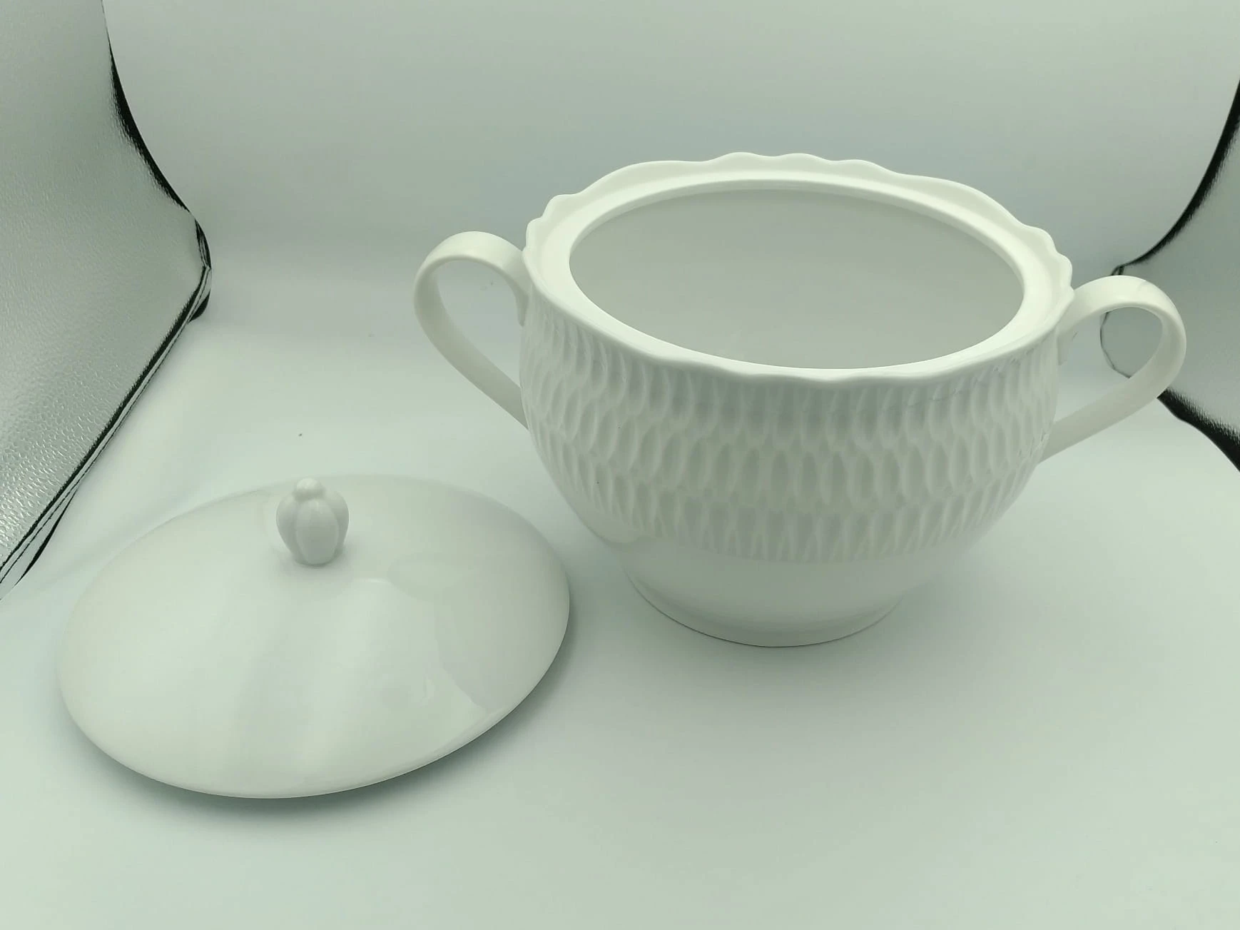 Waza porcelanowa Sofia 0001 o pojemności 3000 ml to praktyczne naczynie do serwowania zup i dań jednogarnkowych. Sprawdzi się zarówno podczas codziennych posiłków, jak i spotkań przy stole.