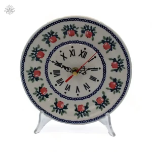 Prosimy o uwagę: Ceramika Bolesławiecka to dzieło sztuki, dlatego każdy zegar może nieco różnić się od prezentowanych na zdjęciach. Możliwe są minimalne różnice w zdobieniu, co dodaje im unikalnego charakteru. Podane wymiary są orientacyjne i mogą nieznacznie różnić się od rzeczywistych.