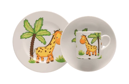 p>Komplet dziecięcy jest wyjątkowy. Kolorowa dekoracja możemy umilić posiłek każdemu dziecku. Produkty są bardzo bezpieczne dla dzieci. Wielkość jest dopasowana specjalnie pod dziecięce potrzeby. Dodatkowo zestaw jest zapakowany w specjalnie dedykowane kartoniki z dziecięcymi motywami. Jest to idealny prezent dla każdego dziecka. talerz 205mm miseczka 250ml kubeczek 180mm